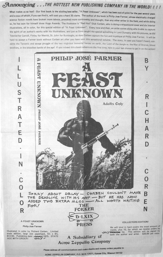 Here is a flyer from an unknown book catalog for the Fokker Press edition of this book. Wow, a signed hardcover for $20, where's my time machine when I need it!