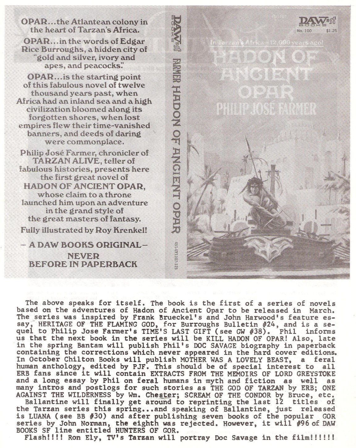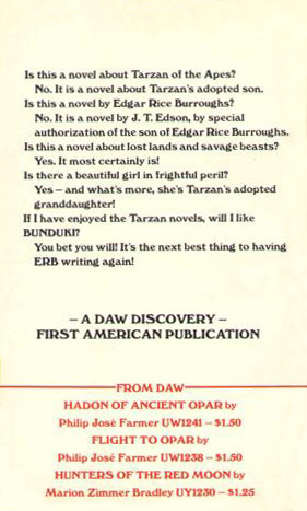 The back cover of BUNDUKI by J.T. Edson, DAW paperback 1976, lists both Opar novels.