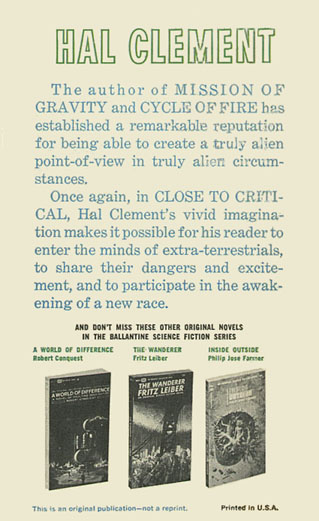 The back cover of CLOSE TO CRITICAL by Hal Clement, Ballantine paperback 1964, says "And don't miss these other original novels in the Ballantine science fiction series".