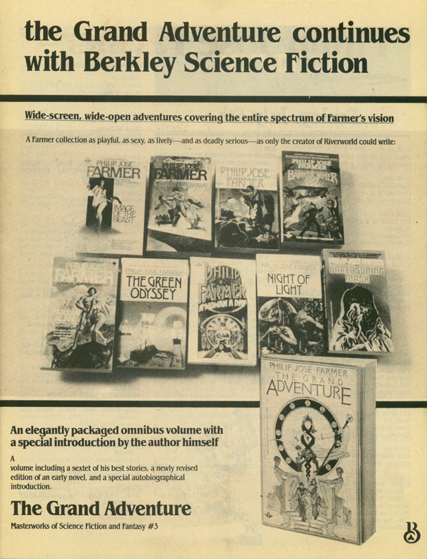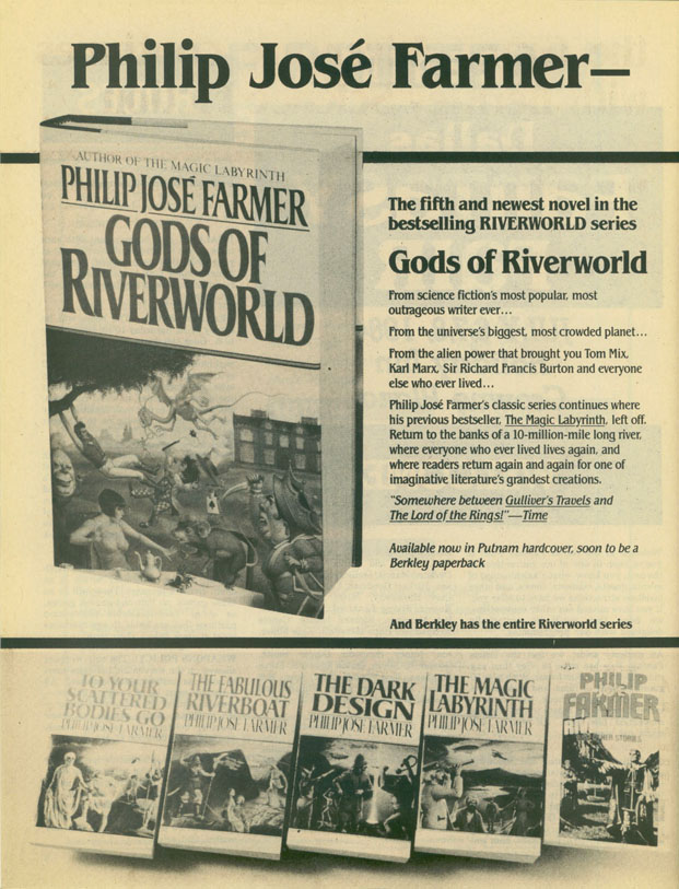 Here is a full page ad from Berkley, featuring RIVERWORLD AND OTHER STORIES. In the November 1979 issue of Locus (#227).