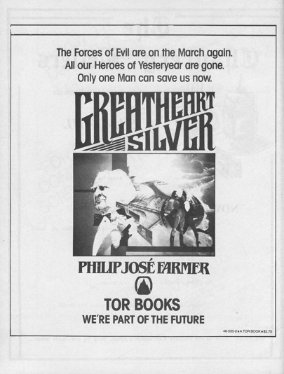 Here is a full page ad from Tor Books that appeared in the Philcon 89 program book.