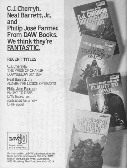 Here is a full page ad from the May 1981 issue of Locus (#244).