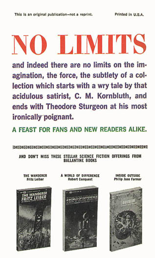 The back cover of NO LIMITS Ed. by Joseph W. Ferman, Ballantine paperback 1964, says "And don't miss these stellar science fiction offerings from Ballantine Books".
