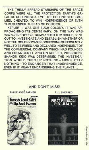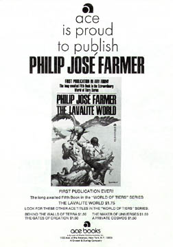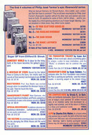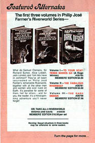 This page contains a variety of interesting advertisements for Farmer's books and stories. Also included are some promos for Farmer's stories coming up in the next issue of a magazine.