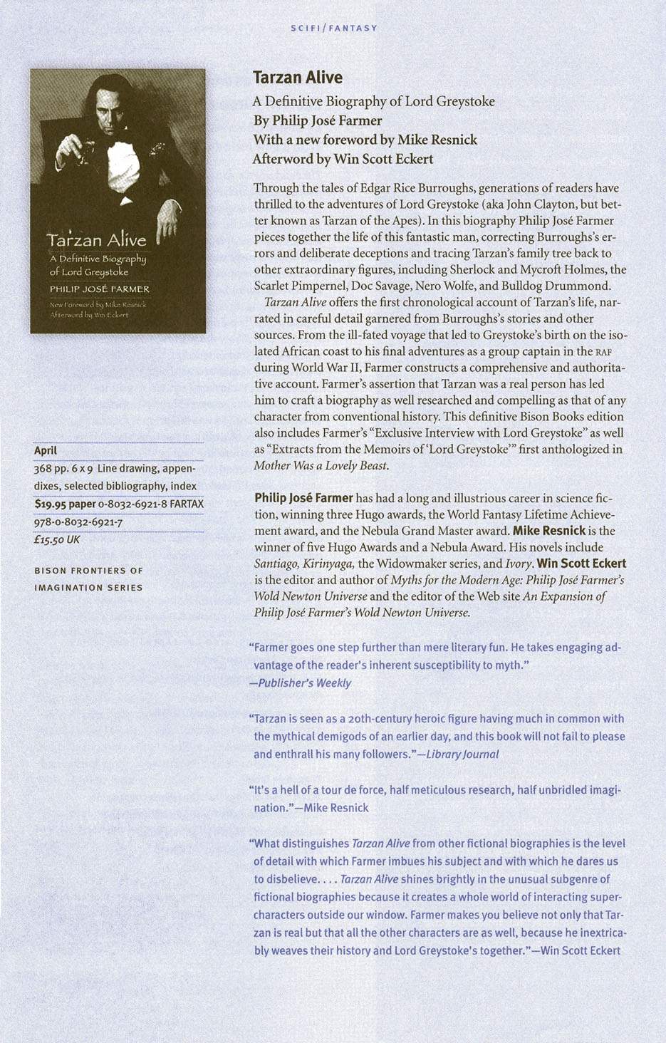 The University of Nebraska Press Spring/Summer 2006 print catalogue has a full page ad for their edition of TARZAN ALIVE