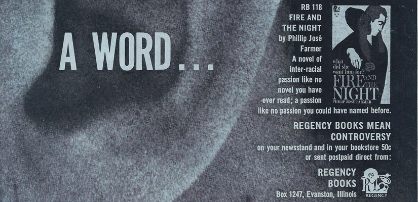 The back cover of STRANGE RELATIONS by Philip José Farmer, Ballantine paperback 1960, says "And don't miss".
