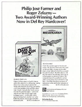 Here is a full page ad from Del Rey, featuring DARK IS THE SUN. In the October 1979 issue of Locus (#226).