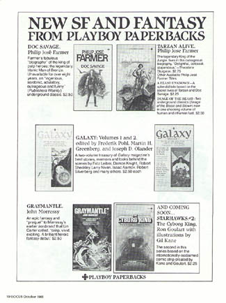 Here is a full page ad from the October 1981 issue of Locus (#249) from Playboy Books.