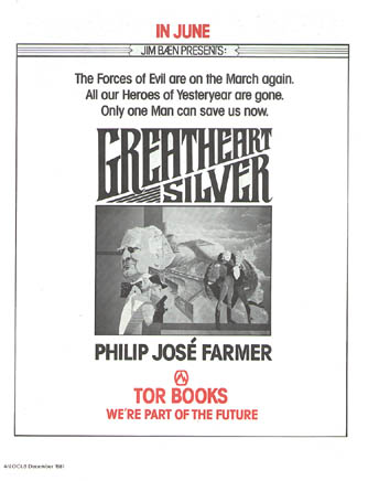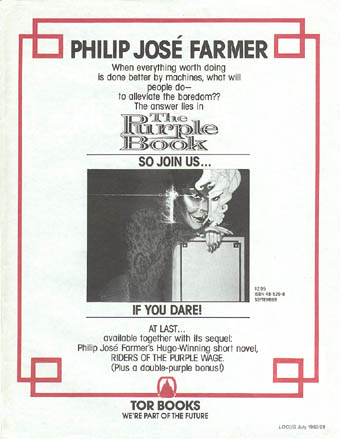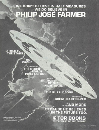 Here is a full page ad from the November 1981 issue of Locus (#250) for the Tor line of PJF paperbacks.