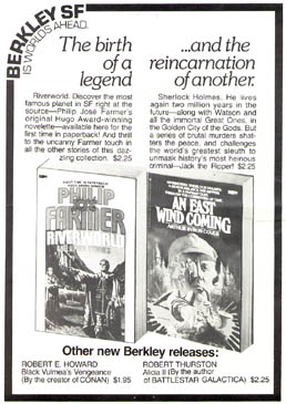 Here is a one half page ad for Berkley from the October 1983 issue of Locus (#273).
