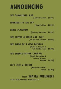 The back cover of THIS ISLAND EARTH by Raymond F. Jones, (Shasta hardcover 1952), announces forthcoming books. Including THE LOVERS and MOTH AND RUST combined in one hardcover, for only $3.00! This book was never published.