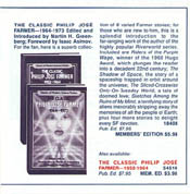 The Spring 1984 issue of Things to Come from the Science Fiction Book Club has a two page spread for THE CLASSIC PHILIP JOSÉ FARMER 1952-1964 with a description of the story.