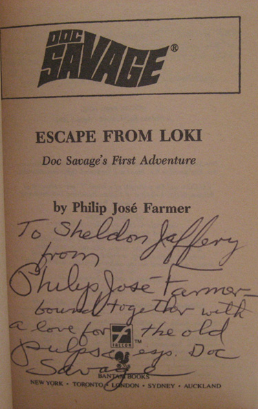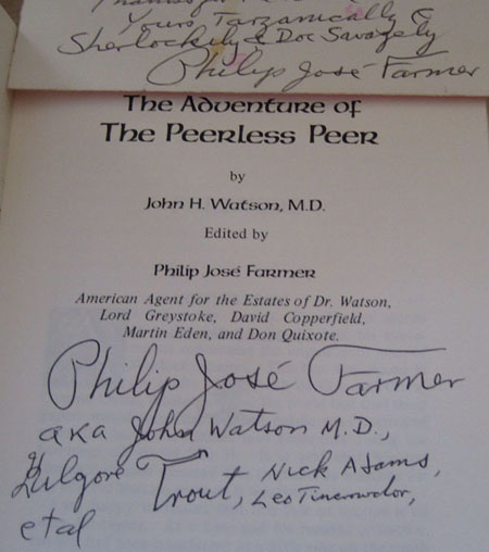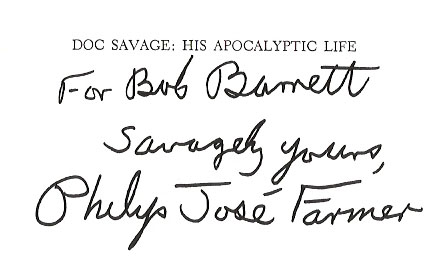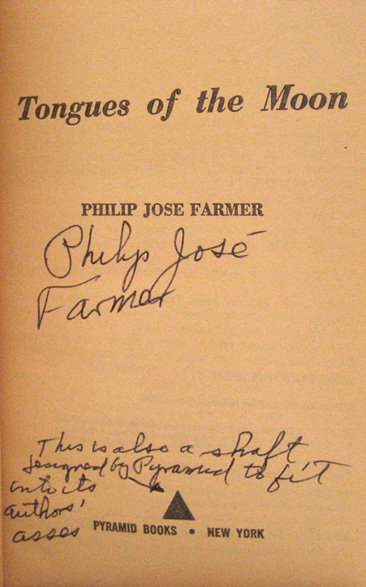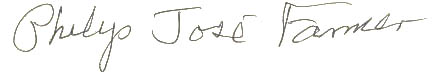 We have had several (ok three) requests to verify that a signature in a book is actually that of Philip José Farmer.