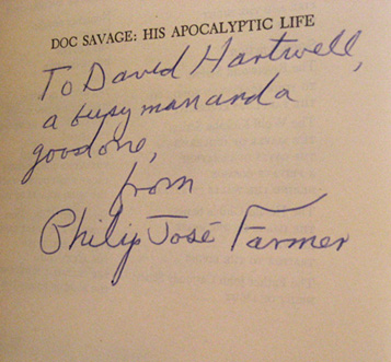 An association copy of DOC SAVAGE: HIS APOCALYPTIC LIFE inscribed to editor David Hartwell.