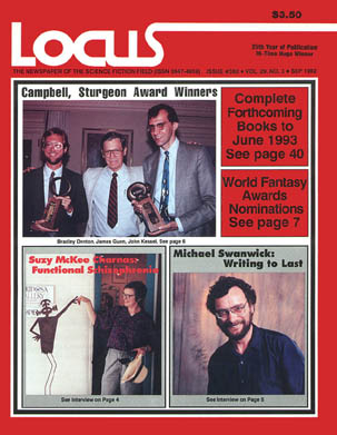 Farmer turns book critic but spends most of his ink criticizing publishers, editors and cover artists. Eventually he gives a luke warm review of Chrysalis vol 1. Farmer's The Last Rise of Nick Adams appears in Chrysalis vol 2.