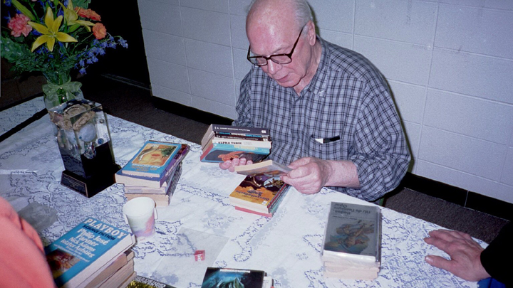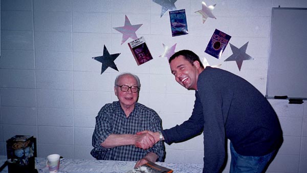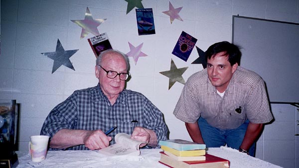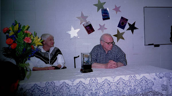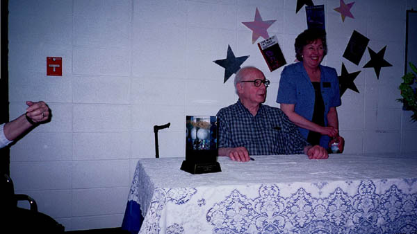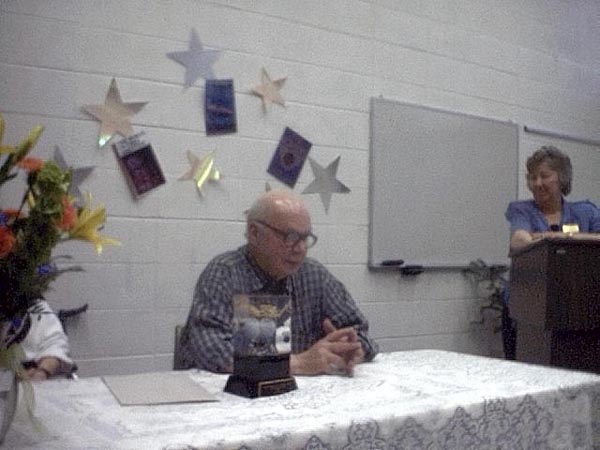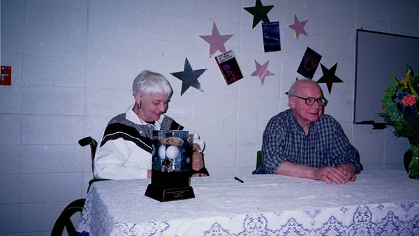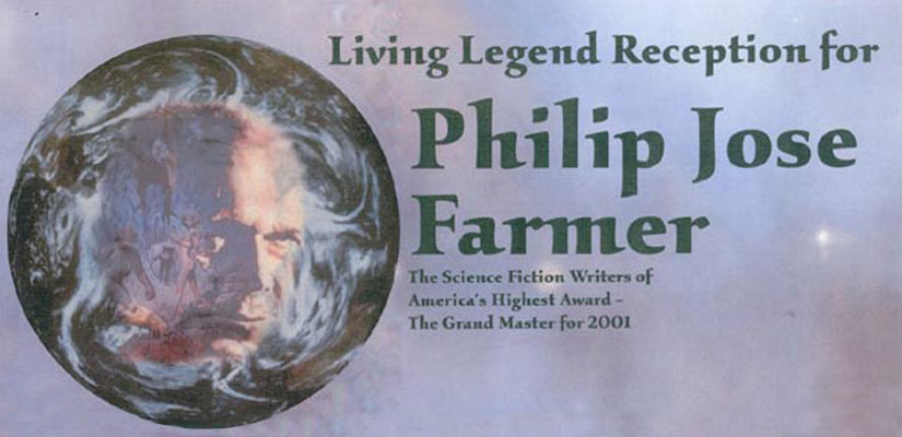 On May 19th, 2001 the Peoria Public Library held a Living Legend Reception for Philip José Farmer in celebration of his having been awarded the Grand Master Award at the Nebula Award Banquet on Saturday April 28, 2001, The award was presented to him by Harlan Ellison. Mike Croteau had helped to arrange it so that many of us serious-to-rabid collectors had all of the information necessary to make plans to attend not only the reception but also to have dinner with Phil and his wife Bette later that evening.