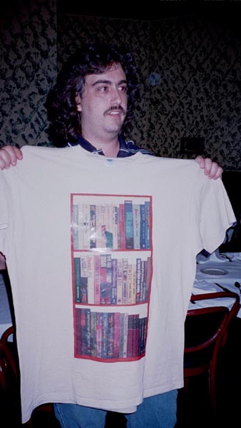 After dinner Mike asked all of us to sign a shirt that he had made just for the occasion, with many of Phil's books on the shelf. He also presented an identical shirt to the Farmers after dinner.