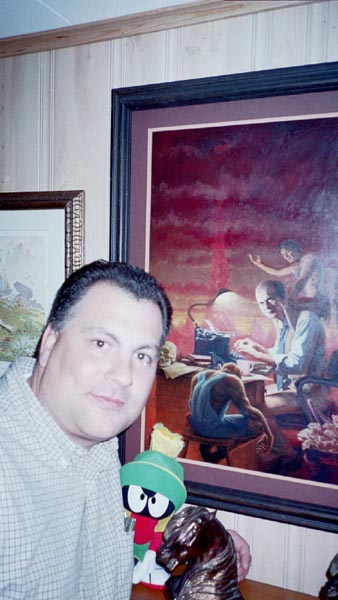 After the reception was over Phil was going to rest for a couple of hours before going out to dinner with the group. Bette graciously invited the group to come to their house, to watch the tape that had been made at the Nebula Awards banquet while we waited. These pictures show some of Phil's personal library and his collection of the artwork used on his book covers.