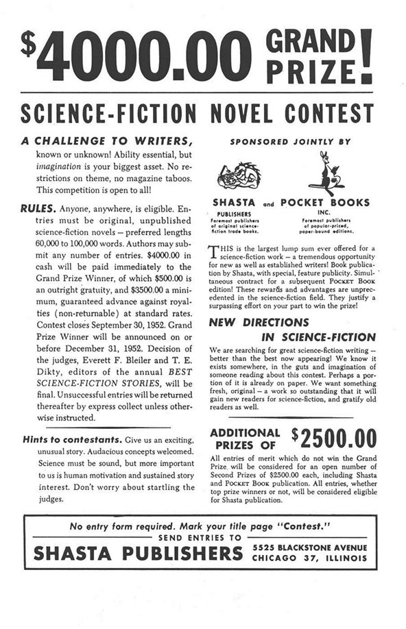 of a book sent for review. Also included is an announcement for the infamous Shasta contest!