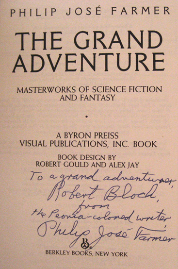 An association copy of THE GRAND ADVENTURE inscribed to Robert Block.