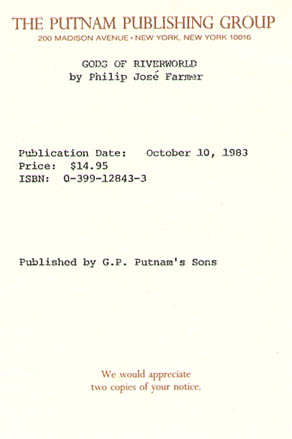 Book five of the Riverworld series. A limited number of books were published by Phantasia Press, the mass market hardcover was printed by Berkley Putnam one month later. The journey is over and now our travelers have control of the resurrection process and the power of life and death over billions of people. But they are not alone. Once again Farmer stimulates the mind.