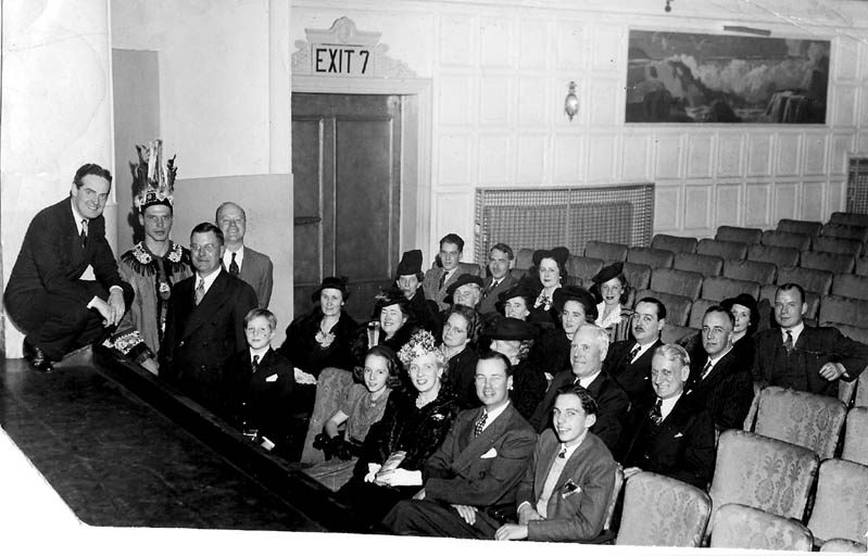 While Phil was attending Bradley Polytechnic in 1940, conductor Fred Warring wrote a fight song for the school. In appreciation Bradley decided to send a student to New York to present him with an Indian headdress. Phil Farmer, student athlete with (he believed) 1/8 Cherokee blood in his veins was selected to go. When he returned Phil wrote an article about the trip for the school newspaper. The local paper also ran an article about the trip. Here is a photo before they went on the air.