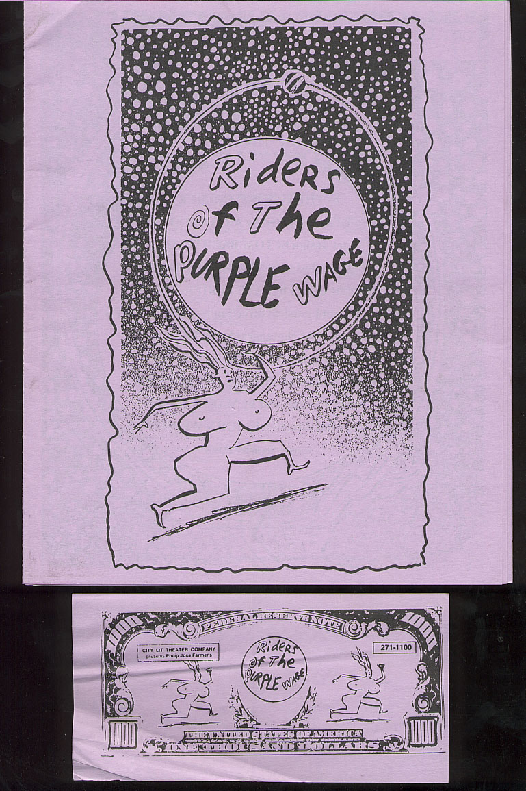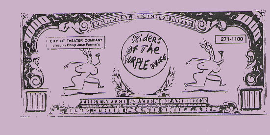 February 1990, Chicago's City Lit Theater Company premiered a stage version of Philip José Farmer's 1967 Hugo winning story "Riders of the Purple Wage". The story was adapted for the stage by Arnold April and was scheduled to run at the Live Bait Theater through January 14, 1990.