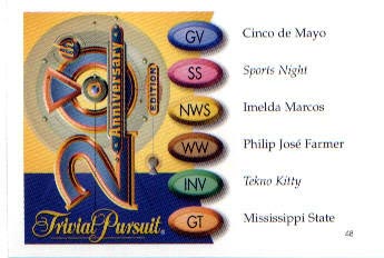 The 20th Anniversary Edition of Trivial Pursuit has the following question in "The Written Word" category. Not that the answer, also below, was ever in doubt.