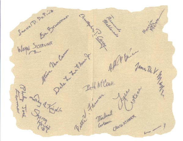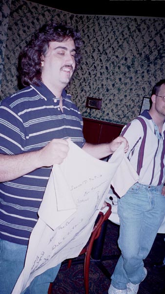 After dinner Mike asked all of us to sign a shirt that he had made just for the occasion, with many of Phil's books on the shelf. He also presented an identical shirt to the Farmers after dinner.